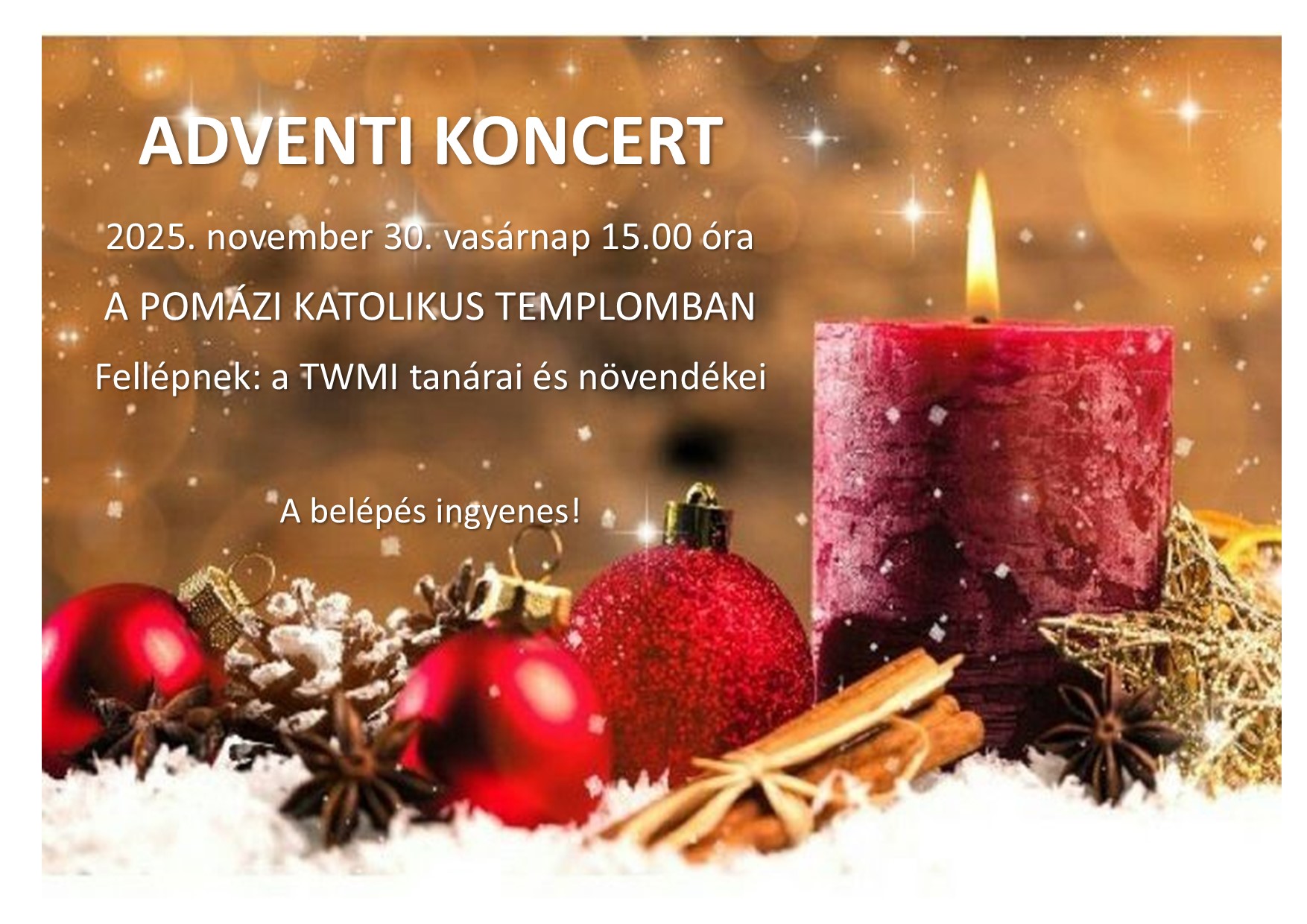 Az adventi időszak meghitt hangulatát idézi meg a Pomázi Szent István Király Római Katolikus Templomban megrendezésre kerülő ünnepi koncertünk, amelyre 2025. november 30-án, vasárnap 15 órakor várjuk az érdeklődőket. A különleges alkalmon a TWMI tanárai és növendékei lépnek fel, akik ünnepi műsorral készülnek a közönség számára.