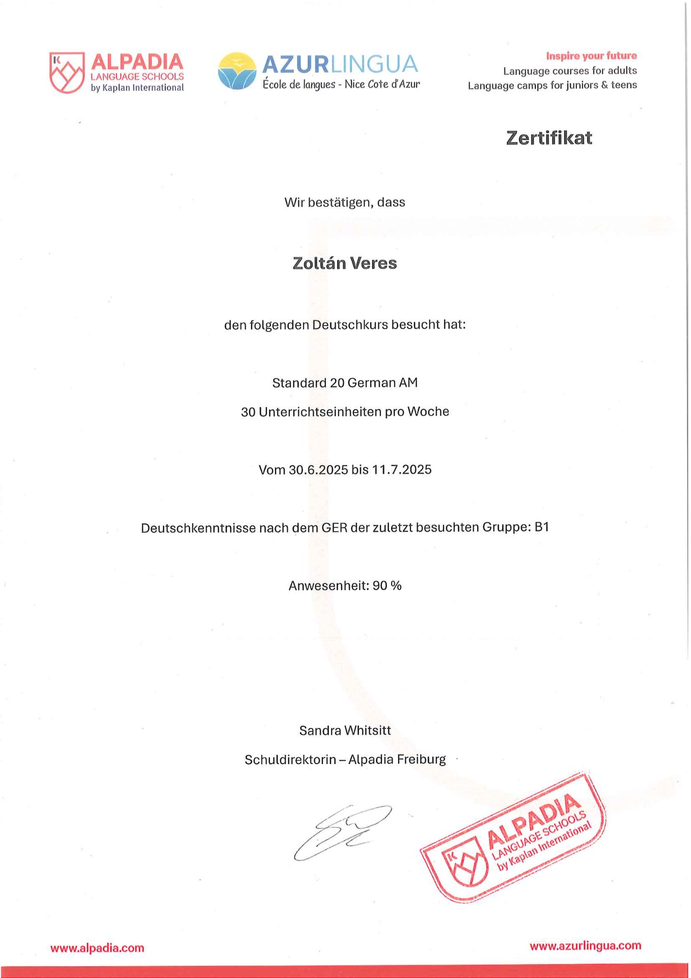 A program nem csak a német nyelvtudásomat mélyítette el, de segített abban is, hogy új barátságokat kössek, és nyitottabban álljak más kultúrákhoz. Ez a két hét egy életre szóló élmény volt, tele új ismeretekkel, barátokkal és felejthetetlen kalandokkal. Az Erasmus+ pályázat egy fantasztikus lehetőség, amelynek köszönhetően a nyelvtudásom mellett a személyiségem is sokat fejlődött.